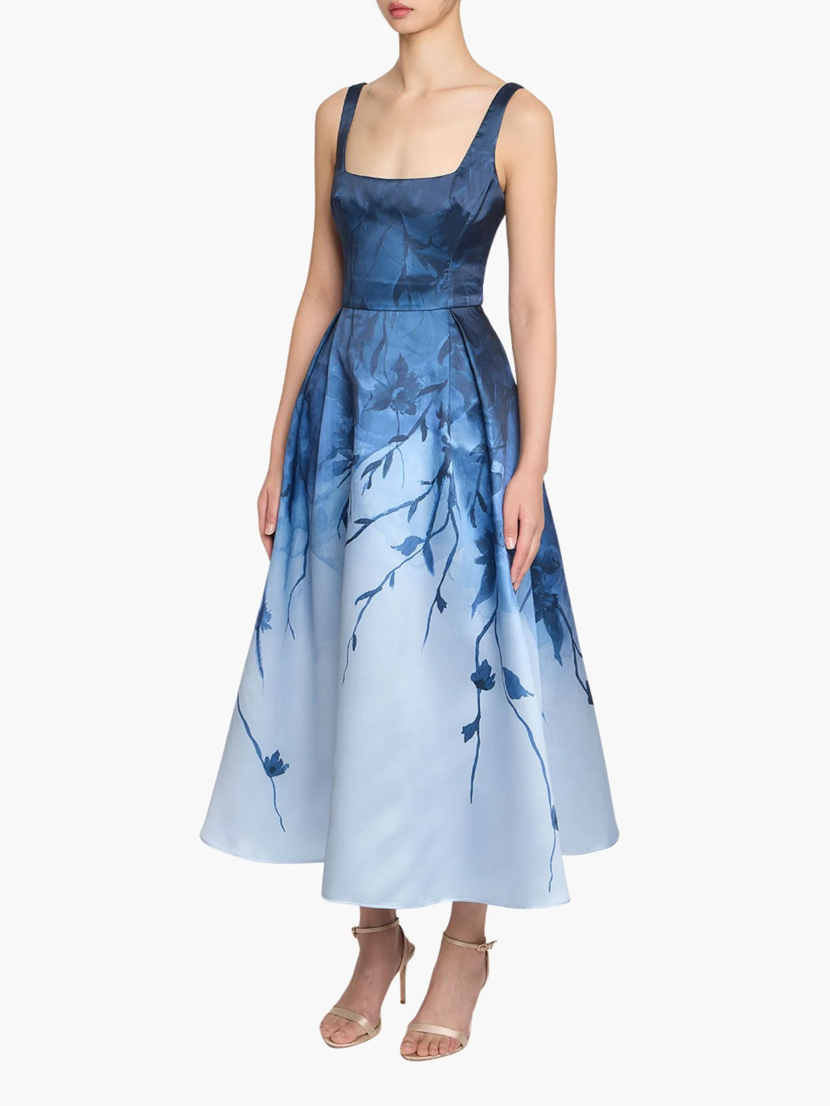 The Floral Printed Mikado Midi Dress combines the tailored nature of Mikado fabric with a elegant floral print. The sleeveless cocktail dress features an a-line silhouette and square neckline, complete with a romantic deep v-shaped back detail.